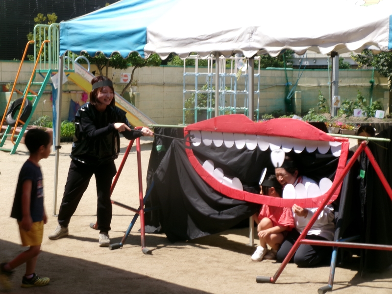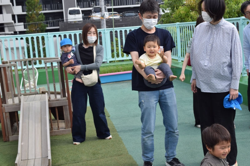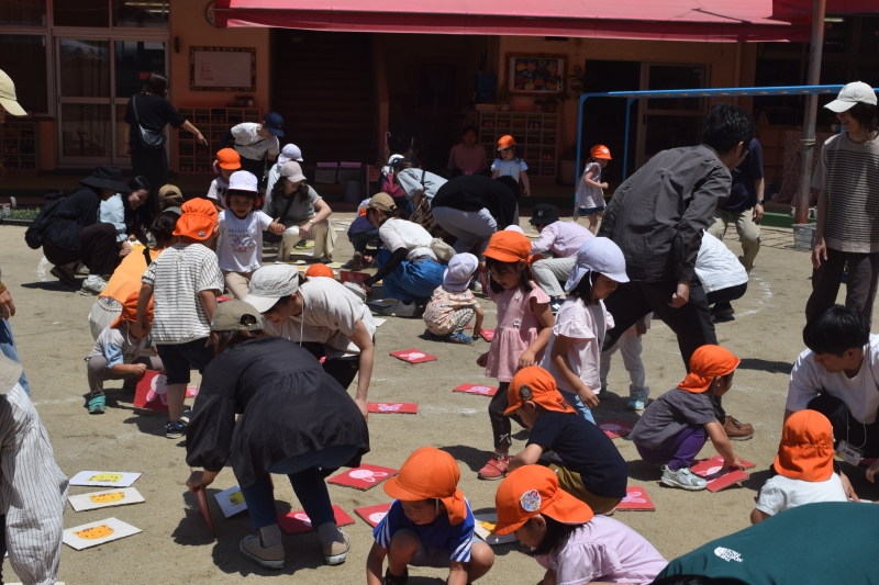 園庭では、親子でゲーム大会!”ダンシング玉入れ”と”カードめくり”をしました。みんなで白熱して大盛り上がりでした。