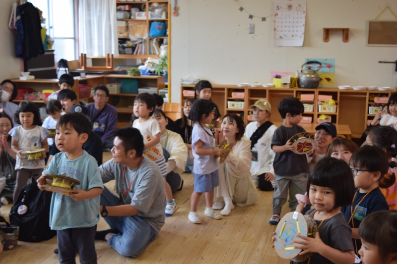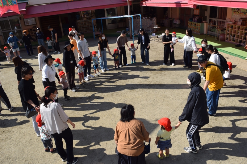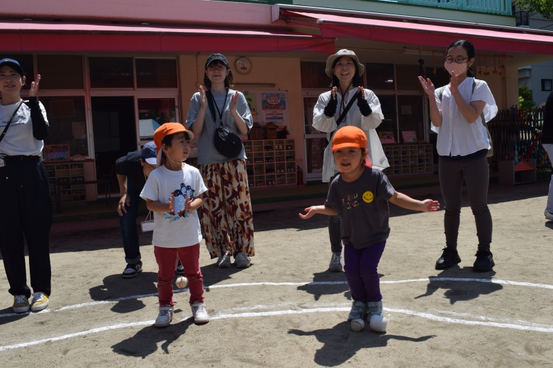 その後は「ふしぎなたまご」のパネルシアターを見たり、園庭で大阪万博テーマ曲「この地球の続きを」に合わせて元気いっぱい踊り、ノリノリで楽しんでいた子どもたちです♪