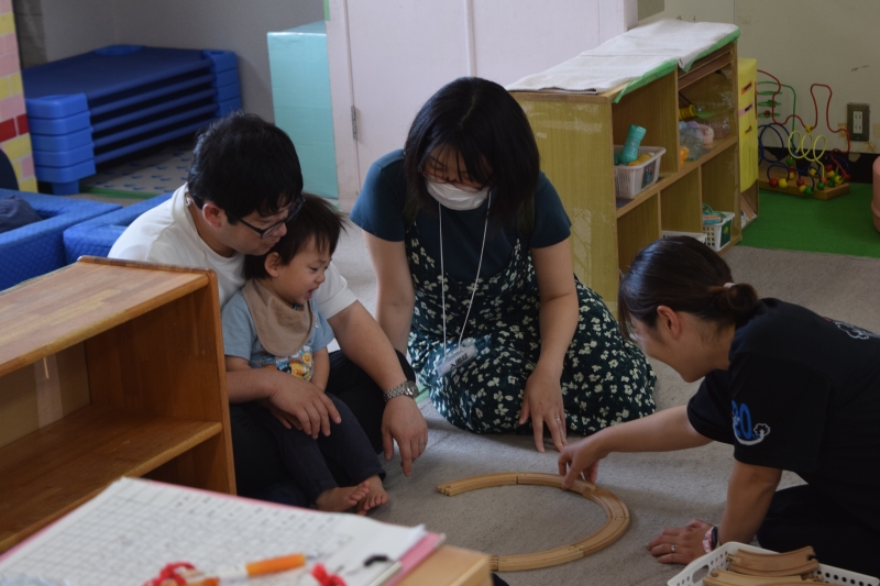 テラスではサーキット遊びをして親子で楽しみました。