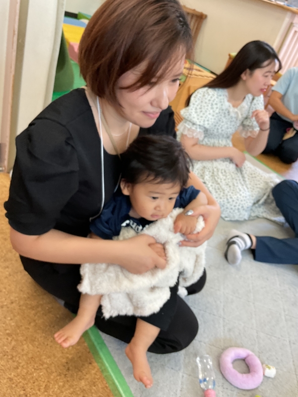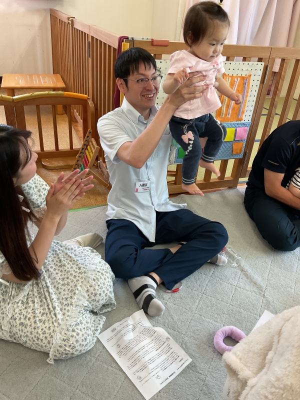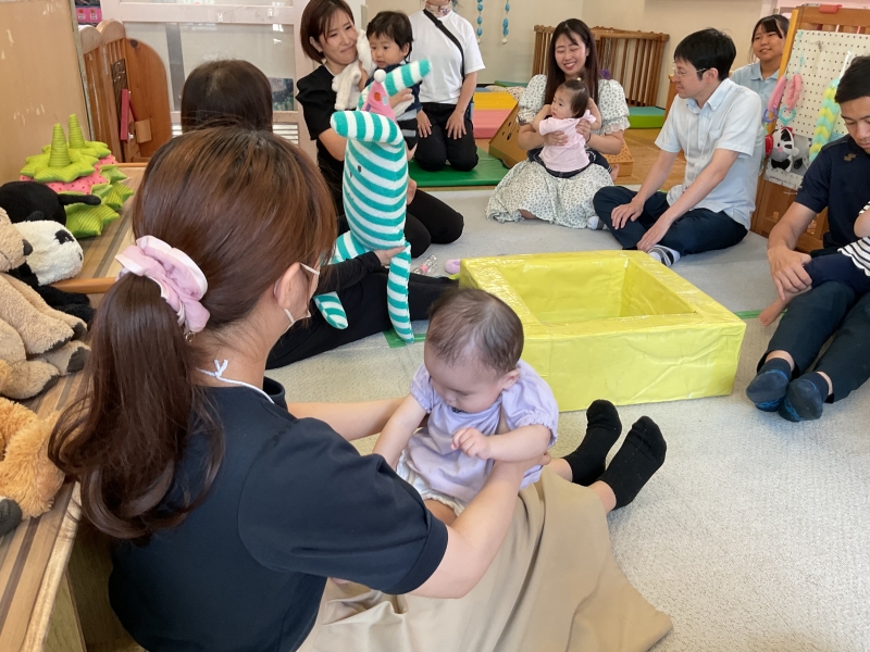 【もも組0歳児】保育園で日頃楽しんでいるふれあい遊びをお家の方と一緒に楽しみました。