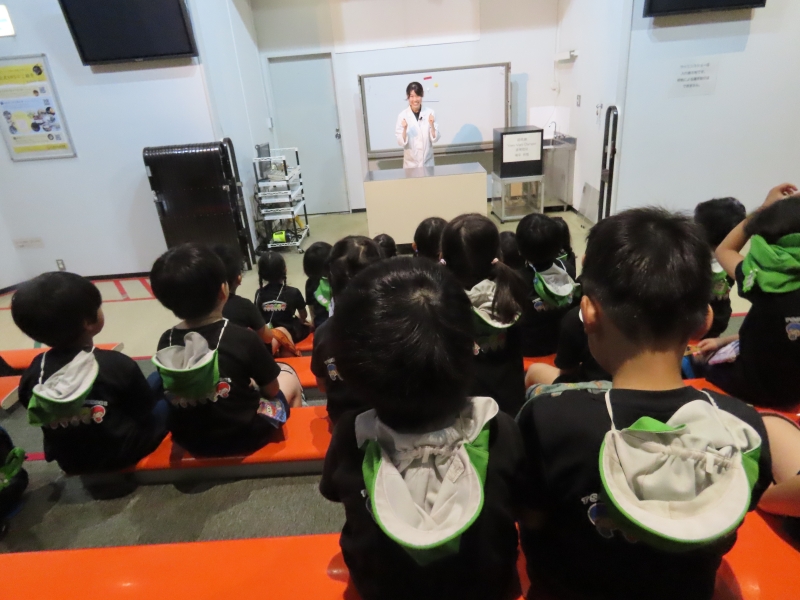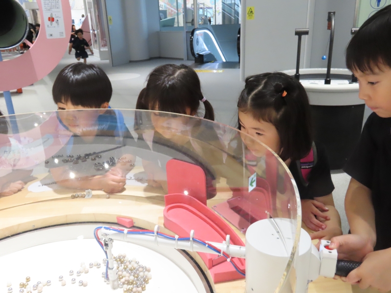 園外保育で科学館に出かけました。ゆり組になって初めての遠足に、子どもたちはドキドキ・ワクワク!プラネタリウムでは部屋が真っ暗になり、満天の星が広がると「わー、きれい!」と歓声があがっていました。