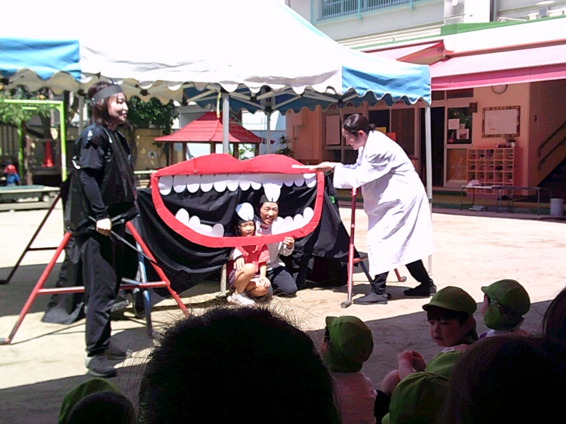 6月のお楽しみ会では、歯の大切さや虫歯のお話を聞き、看護師さんから歯磨きの仕方も教えていただきました。みんなで楽しく学び、歯を大切にする気持ちが芽生えました。